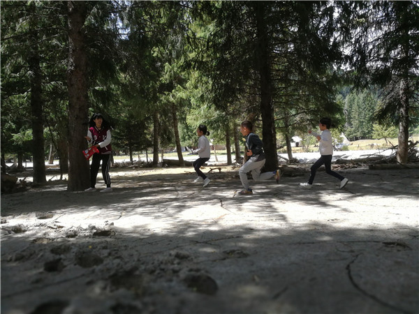 吃过早饭后,全体人员人员来到庄园后面河边小树林内野营、娱乐、游戏.