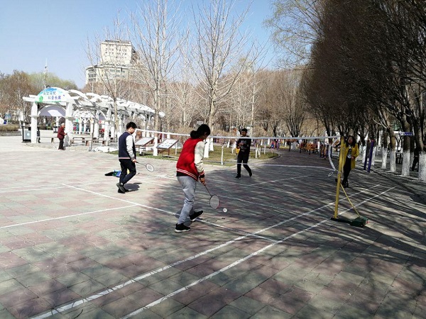 上午13:10分,大家纷纷起身,暂时放下手头工作,走出室内,来到设计院旁边的小公园内。进行跑步、走路、打羽毛球、跳绳、各类器材健身运动。