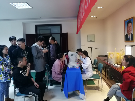为迎接一年一度的全国爱眼日(6月6日)。我院特邀请乌市普瑞眼科医院于2019年5月14日来我院进行了预防眼疾病的知识宣传讲座。同时眼科医院还派出业务骨携带了专业设备为我院职工认真地进行常规视力检查、电脑验光、色觉检查、斜视检查、常见眼部疾病检查等,耐心细致地解答咨询,并向职工们传授一些日常学习和生活中的眼健康保健知识。