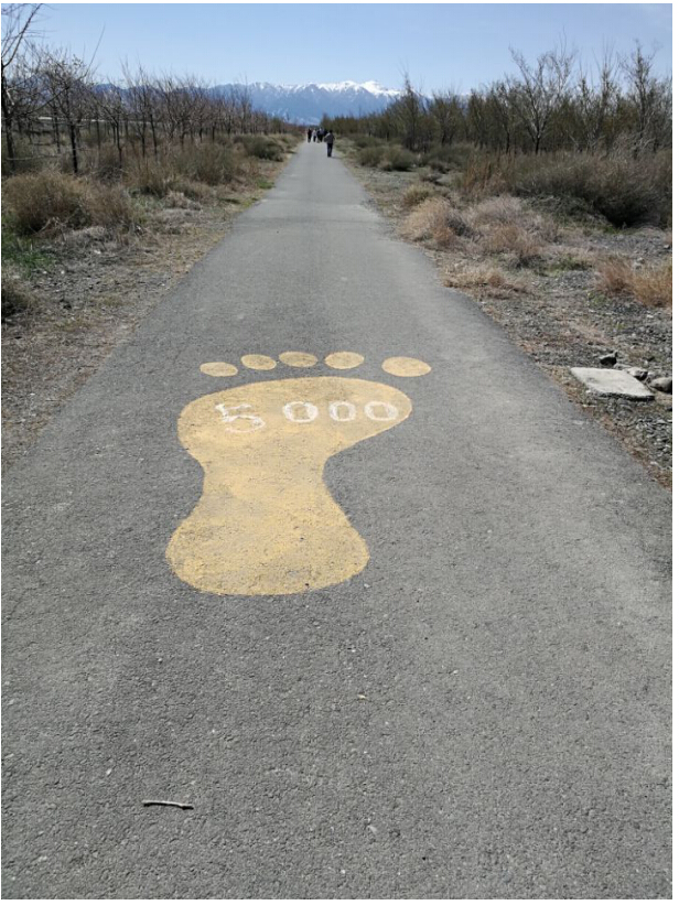 徒步大道位于南山国家森林公园内,大道两旁摆放了不少的雕塑。为了使大家对徒步活动增加更多的兴趣,沿途线路上还设置了很多色彩艳丽不同的图案,可爱的大脚丫上特意标注了公里数,真是很贴心的创意设计呀!