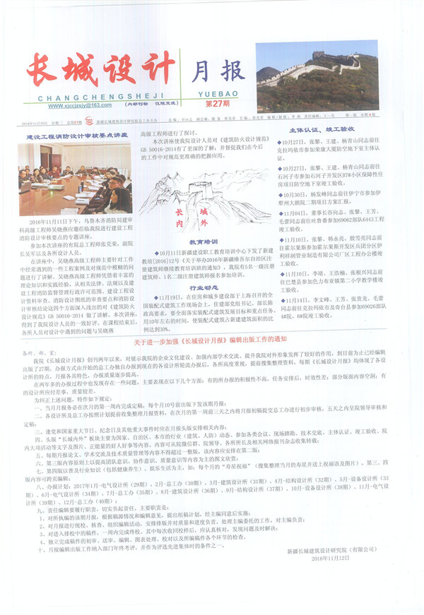 版权所有 © 月报第27期第一版 - 企业动态 - 新疆长城建筑设计研究院有限公司 | 未经许可 严禁复制 | 建议使用1024X768分辨率浏览本站 新ICP备17001984号-1